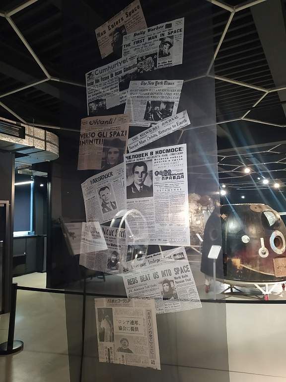«Спутник» – совершенно новое и уникальное пространство, что раскрывает полную трудностей и испытаний историю отечественной и мировой космонавтики. Начало экспозиции открыло перед студентами спускаемые аппараты и телекоммуникационные спутники. А ее продолжение – рассказало учащимся бессмертную историю программы «Союз-Аполлон», а также поведало о попытках развития космического туризма в России и за рубежом.